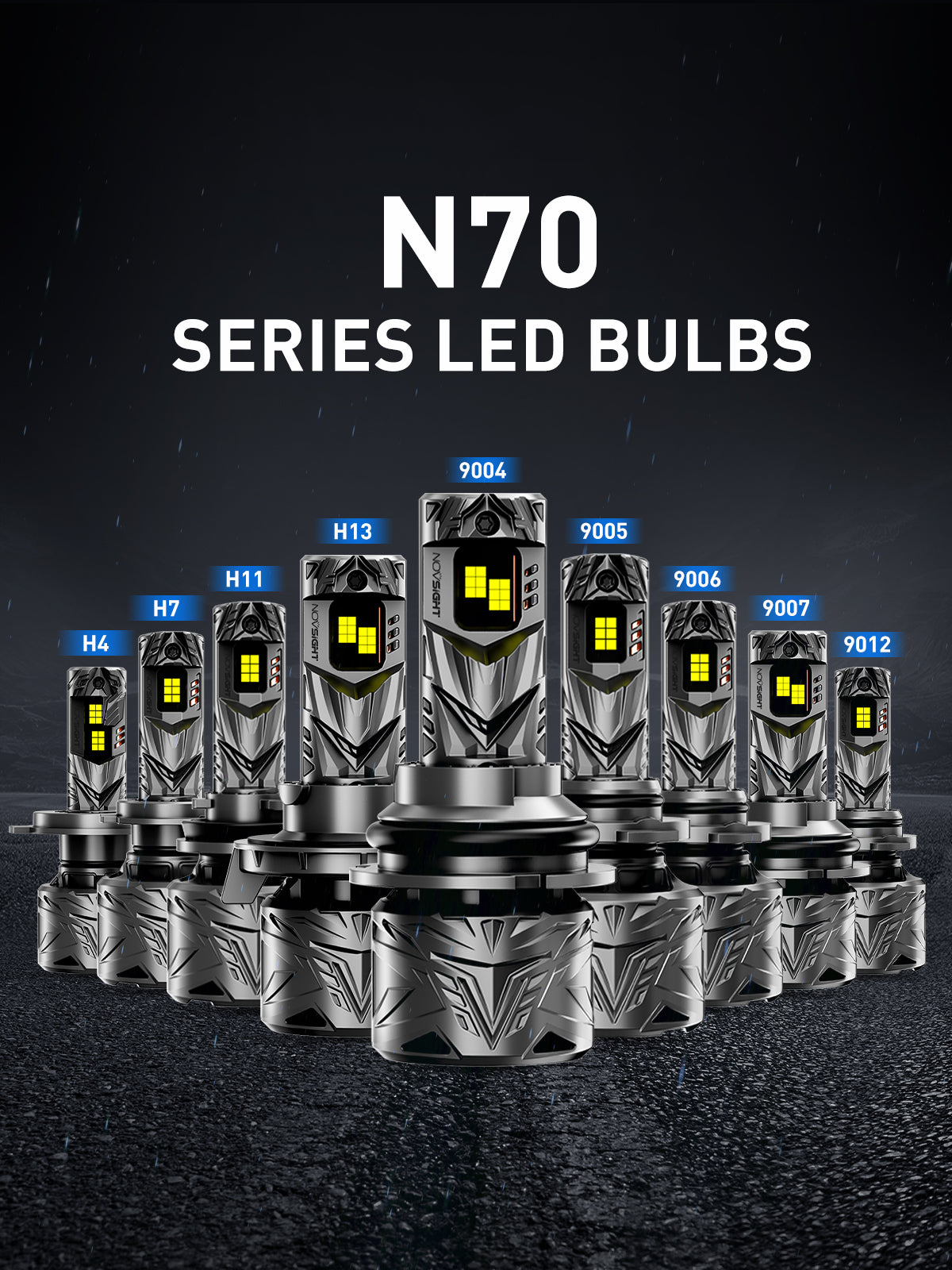 N70 Series | H4 H7 H11 H13 9004 9005 9006 9007 9012 LED Bulbs Super Bright Headlights 240W 50000LM 6500K White | 2 Bulbs
