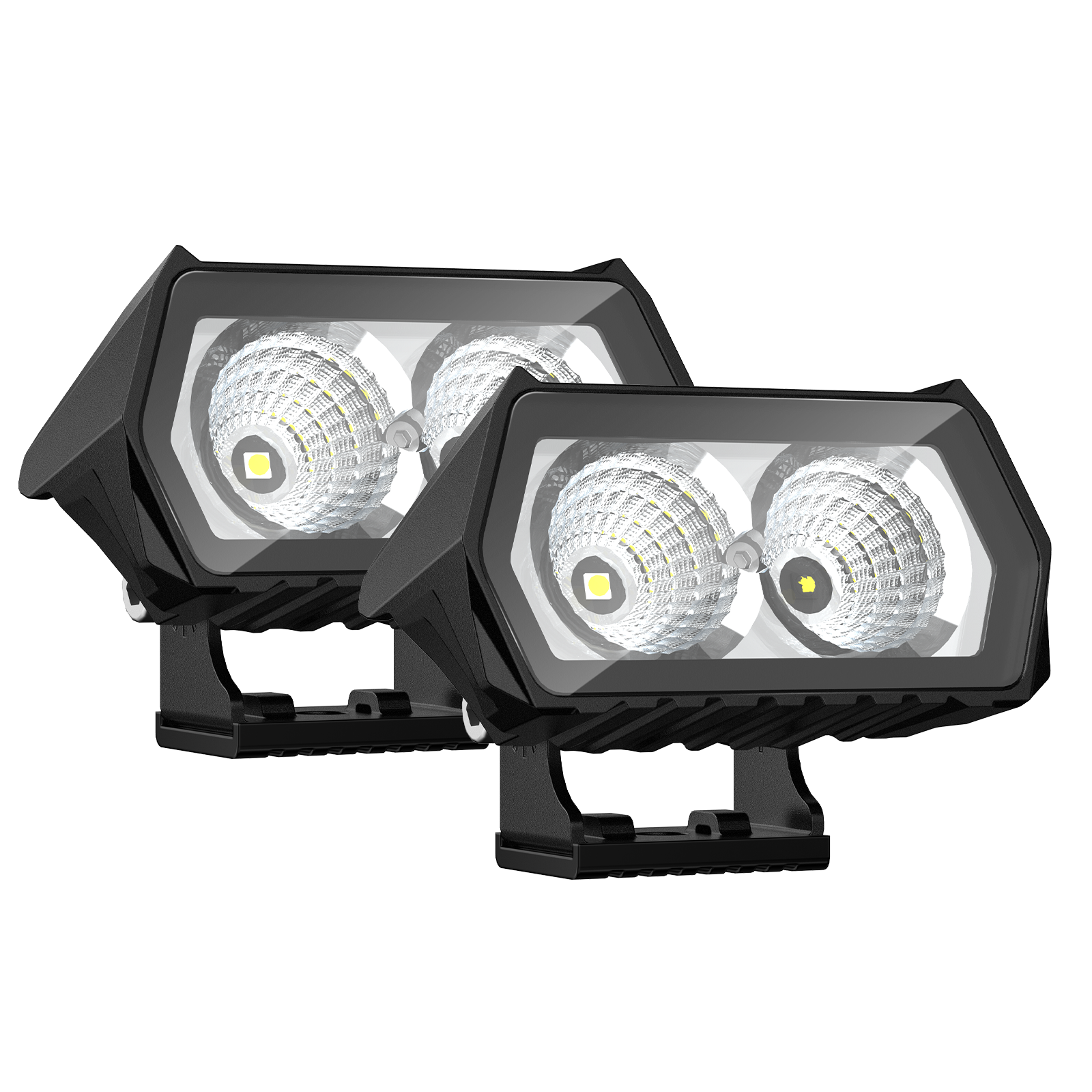 Each pair provides 40W of power and, 6000K brightness, featuring two selectable modes: Spotlight for long-distance illumination and Floodlight for wide-area lighting. Utilizing advanced LED chips, they deliver strong and consistent light output, catering to the needs of various off-road enthusiasts.