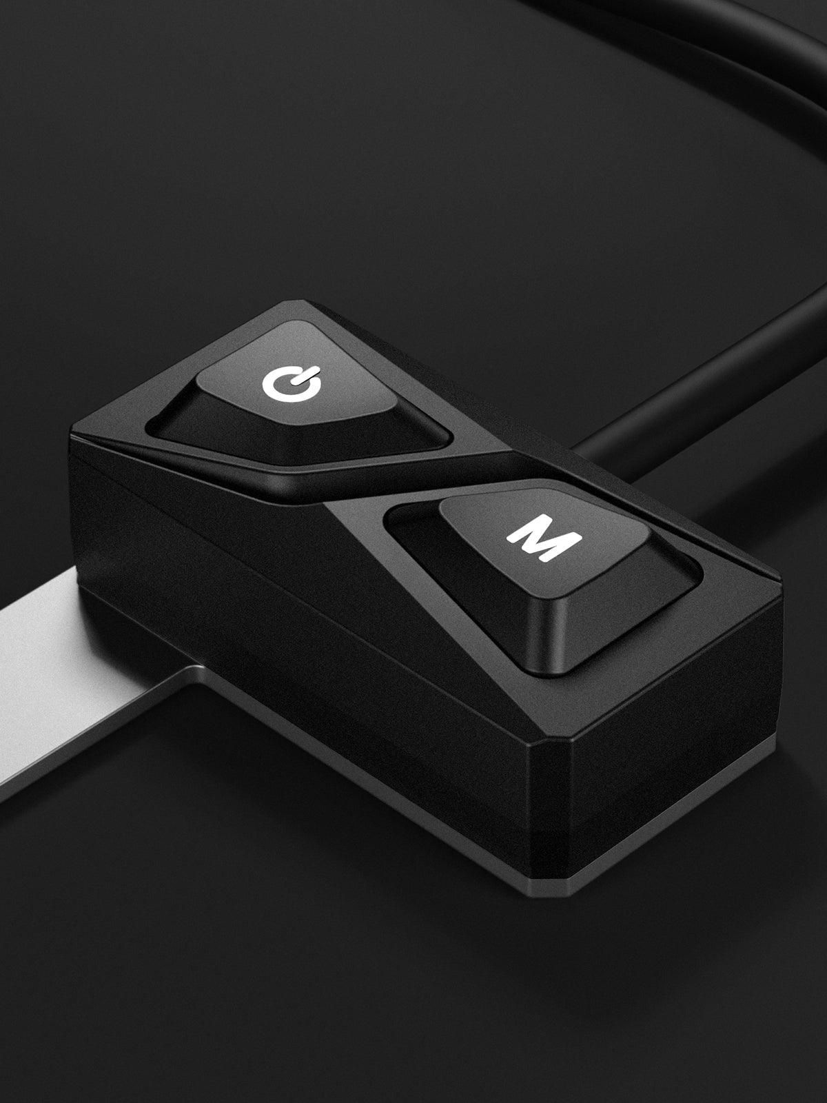The lighting is divided into two control zones: the spotlight zone and the driving light zone. The "OFF" button controls the spotlight zone, and the “M” button controls the driving light zone. Spotlight Zone Switch: A short press of the left button toggles the spotlight on or off.