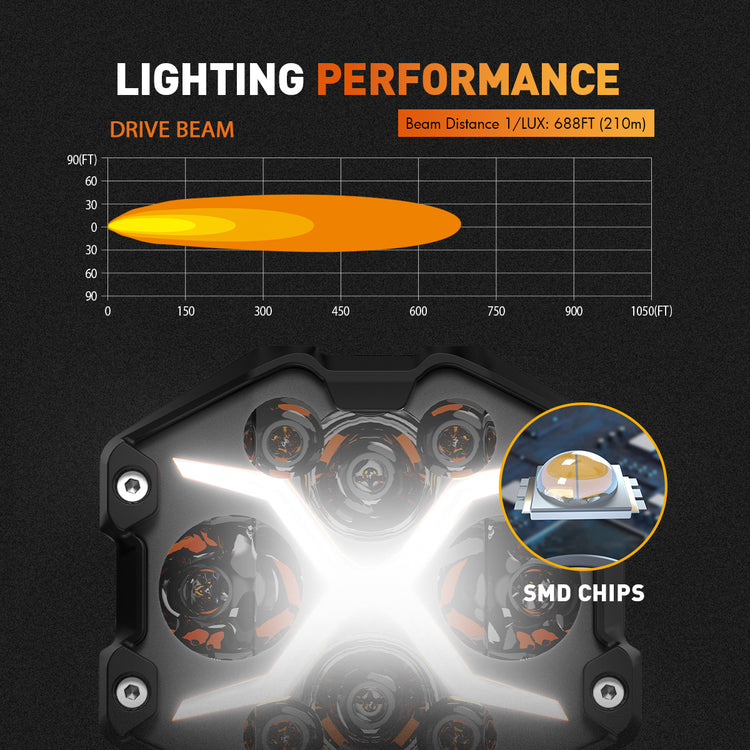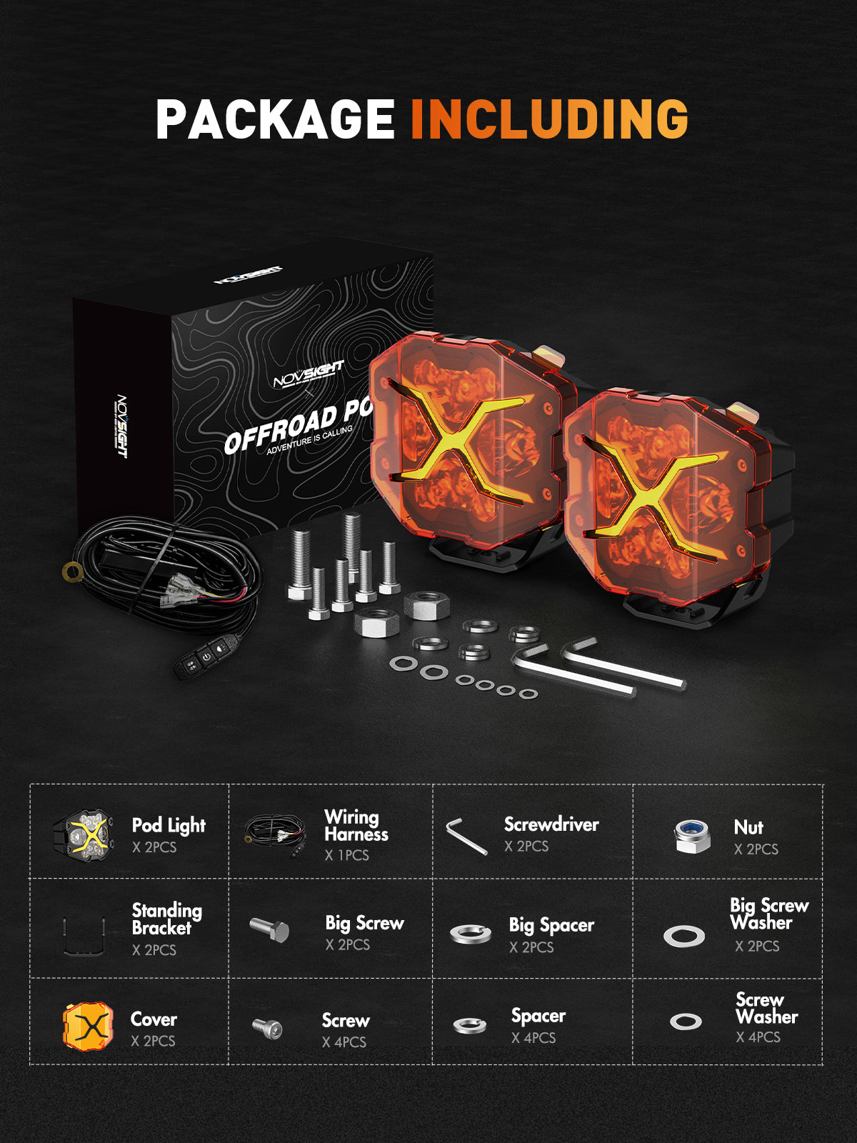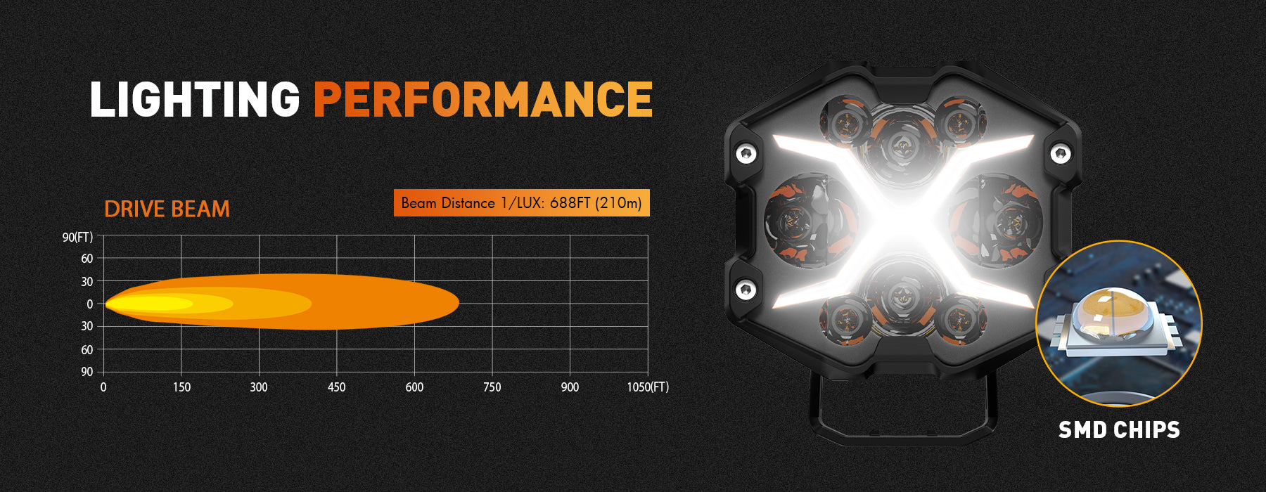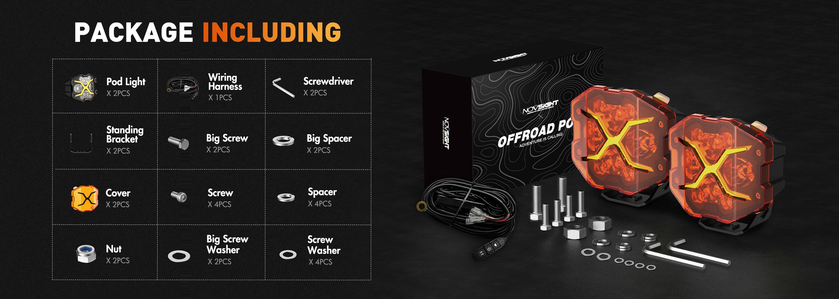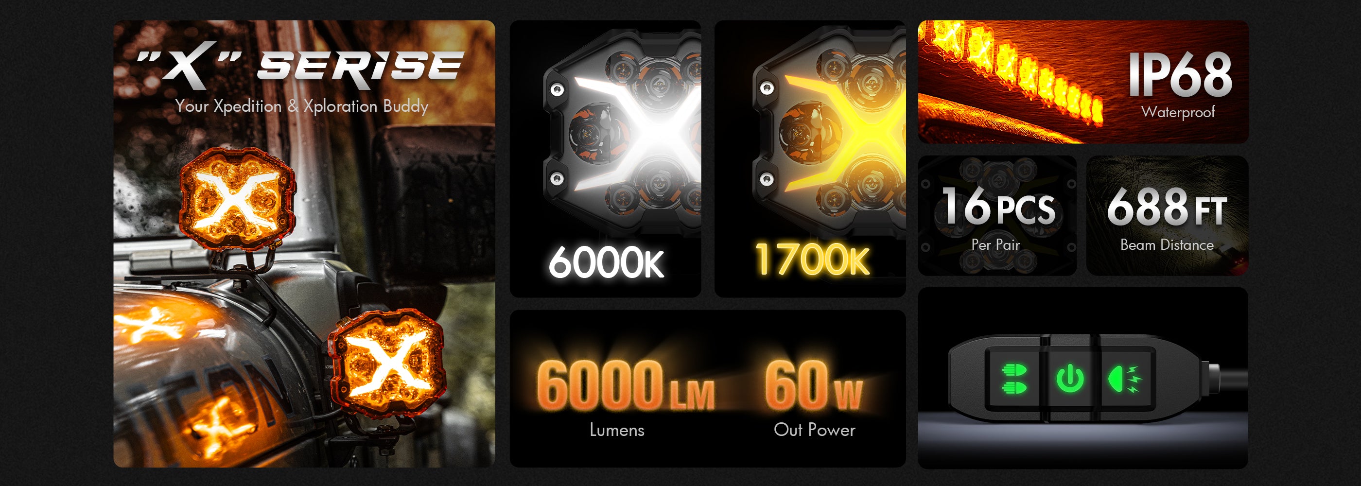What's in the package? Inspired by the essence of Xpedition and Xploration, the bold and striking “X”-Line design brings the spirit of adventure to life. It seamlessly blends innovative aesthetics with powerful brightness, redefining the look and performance of LED pod lights.