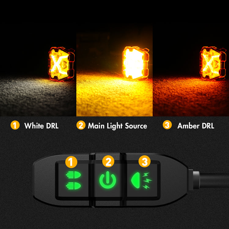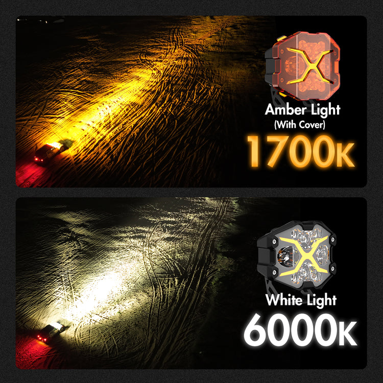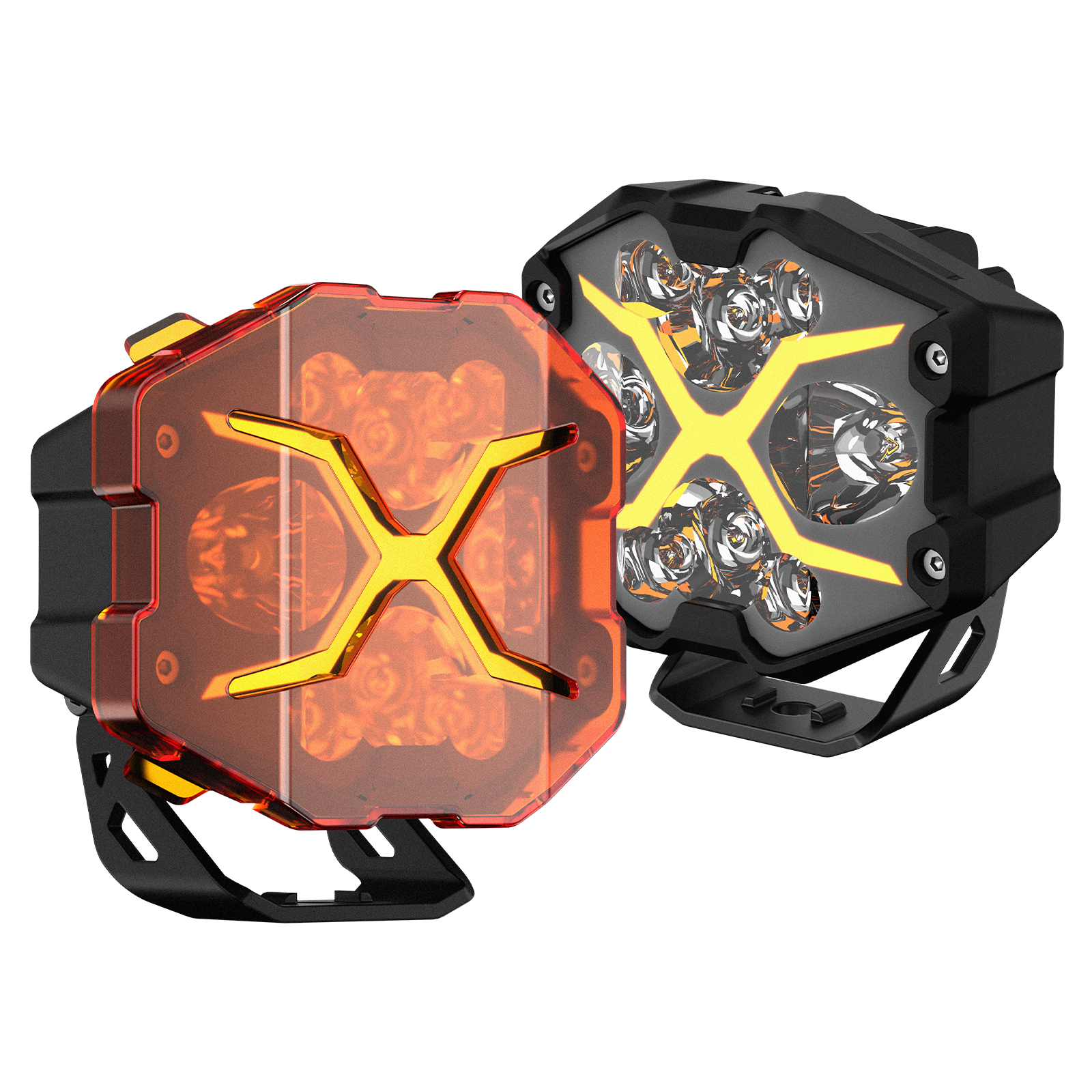 The X-Series 4" LED pod lights combine bold style and powerful performance, featuring a unique X-line pattern that enhances your vehicle's rugged look. Designed as a signature off-road light, they can function as daytime running lights. With a versatile 1-to-2 wiring harness, easily switch between white and yellow light modes to adapt to changing conditions. The yellow housing option boosts light penetration, making it perfect for both daytime running and fog light applications.