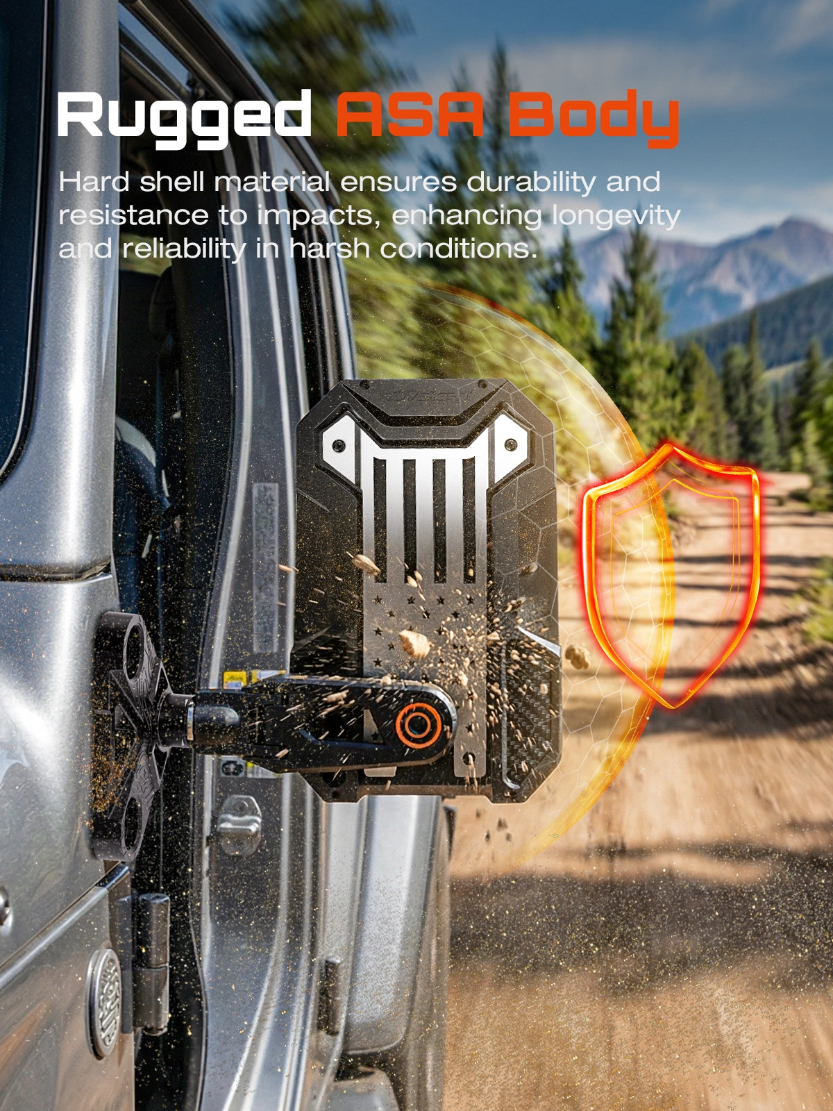 Constructed from high-strength ASA+PC material, the housing is UV-resistant and impact-resistant. It holds up against sun exposure, debris, and rough trail conditions. Built for long-term outdoor performance.