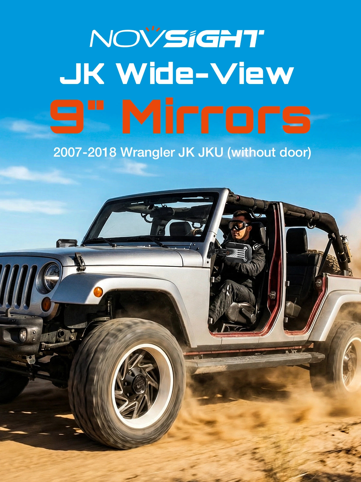 9-inch Side Mirrors for Doorless Driving on 2007–2018 Jeep Wrangler JK JKU