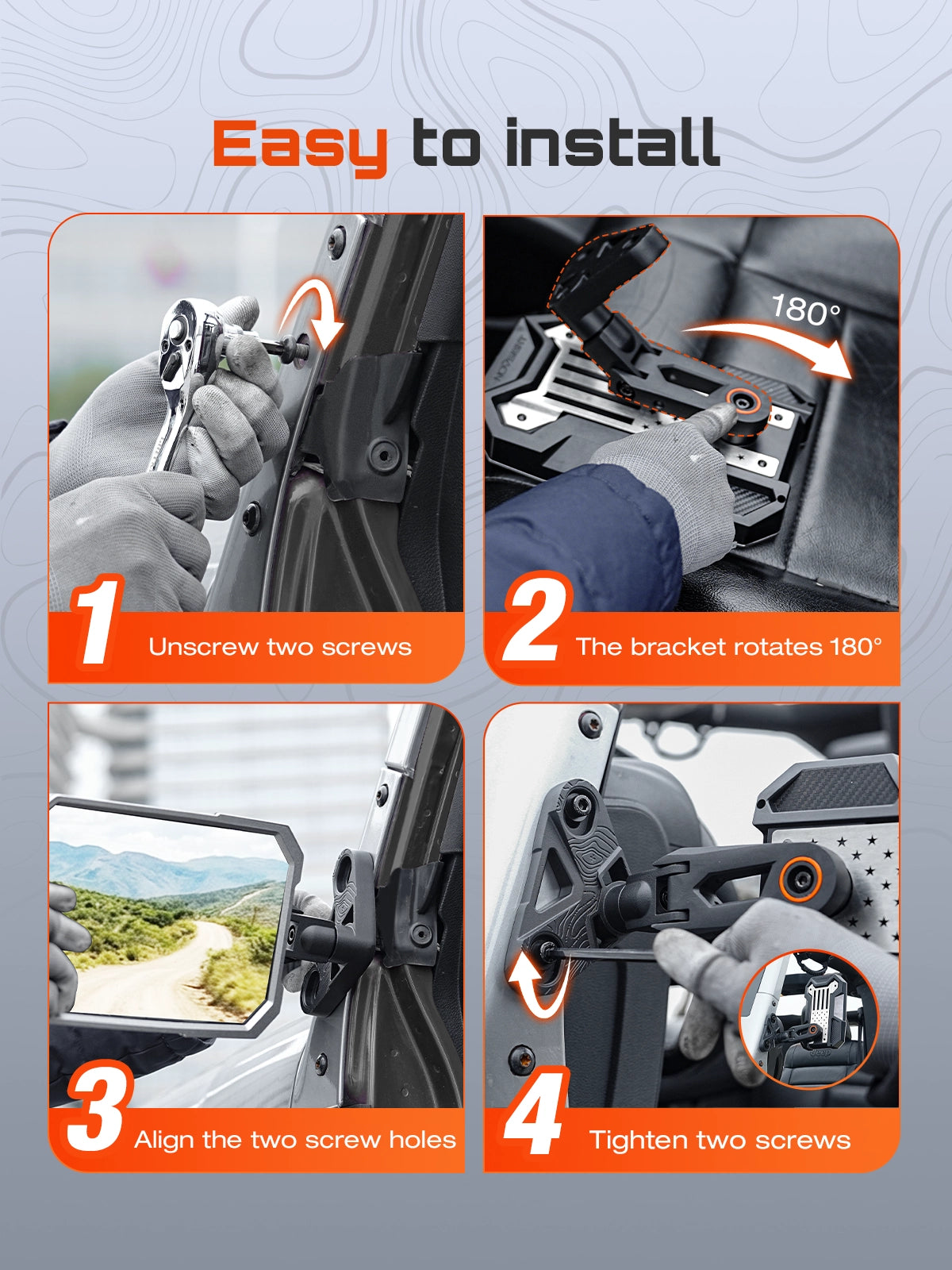 The 9-inch oversized mirror provides a wide, clear field of view, helping reduce blind spots during doors-off driving. You get better awareness of surrounding vehicles and trails at a glance. Ideal for both highway cruising and off-road adventures.