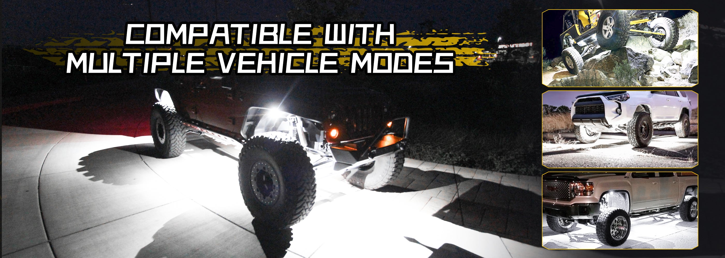 A single rock light in flood beam mode provides 180° illumination. Using multiple lights can significantly increase the coverage area under your vehicle, enhancing nighttime visibility.