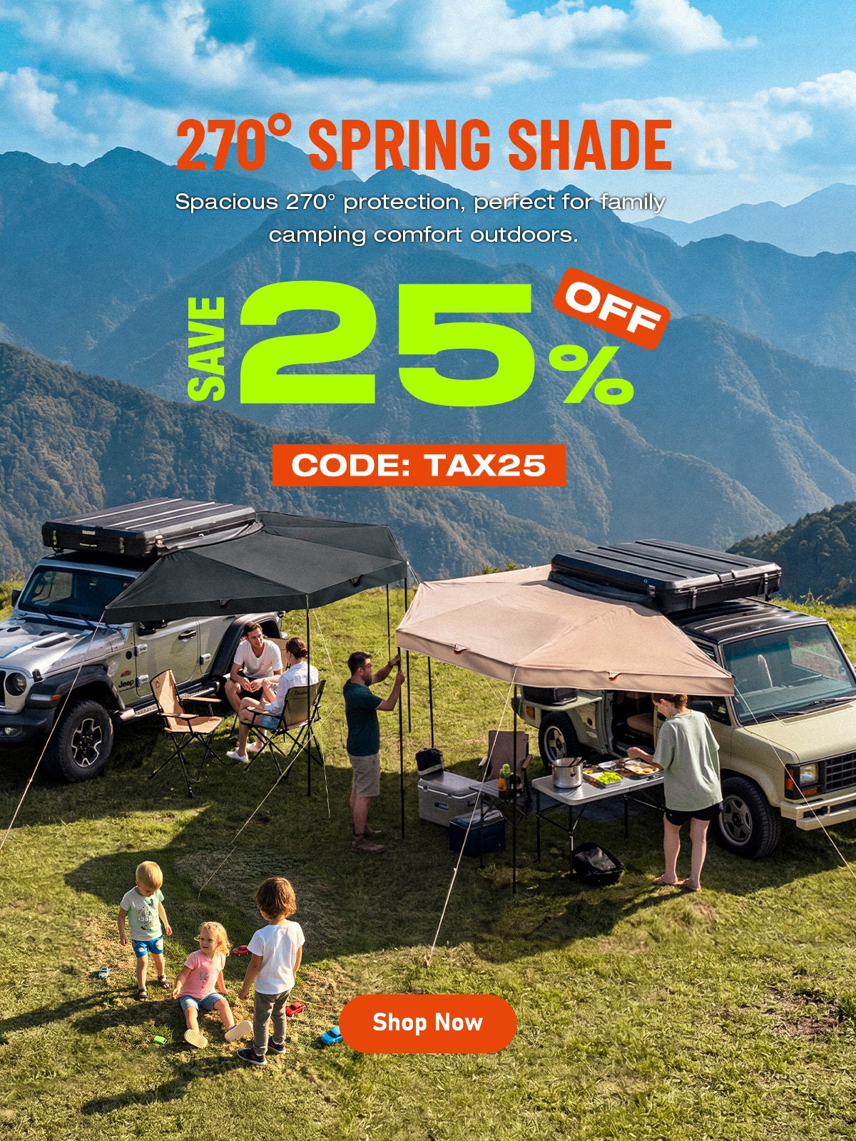 Weatherproof shelter for camping, road trips, and beach days.