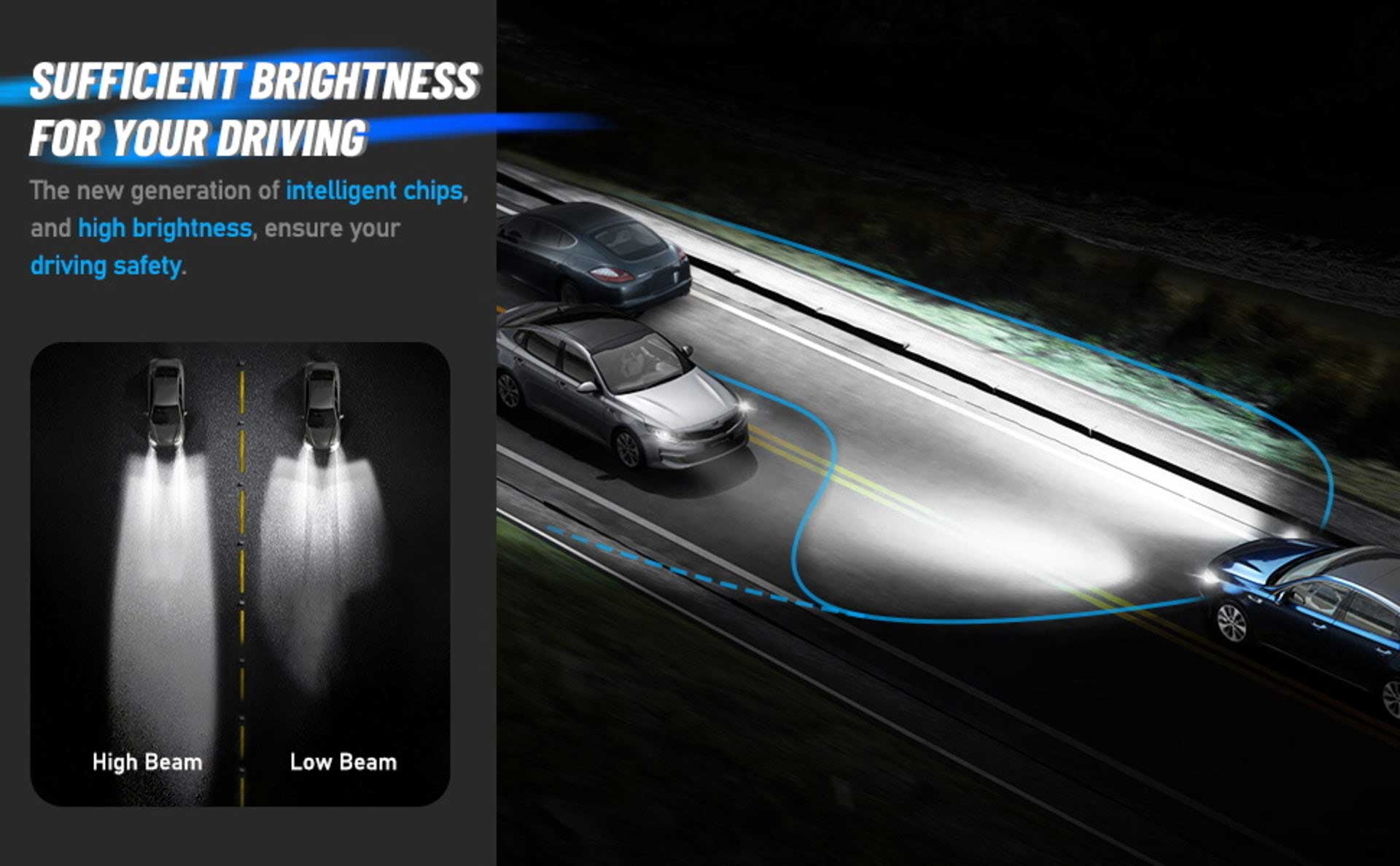 They are equipped with the latest CSP chips, 6500K cool white, 200W 40000LM per pair, providing 900% brightness than halogen bulbs. Visibility and range significantly improved, which means you get to stop distances farther away, for increased safety and security on the road.
