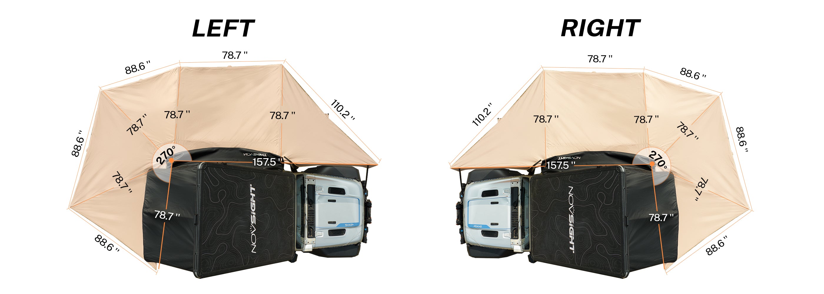 Novsight 270 Degree Car Side Awning Left & Right