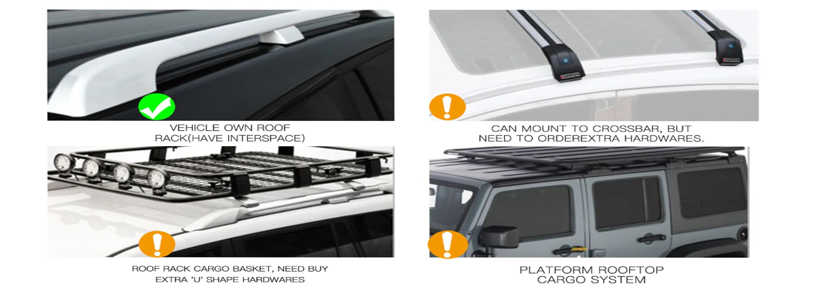 Note: The key point is that the roof rack needs to have gaps and enough space to allow the L-shaped bracket of the side tent to be installed in the gap of the roof rack.