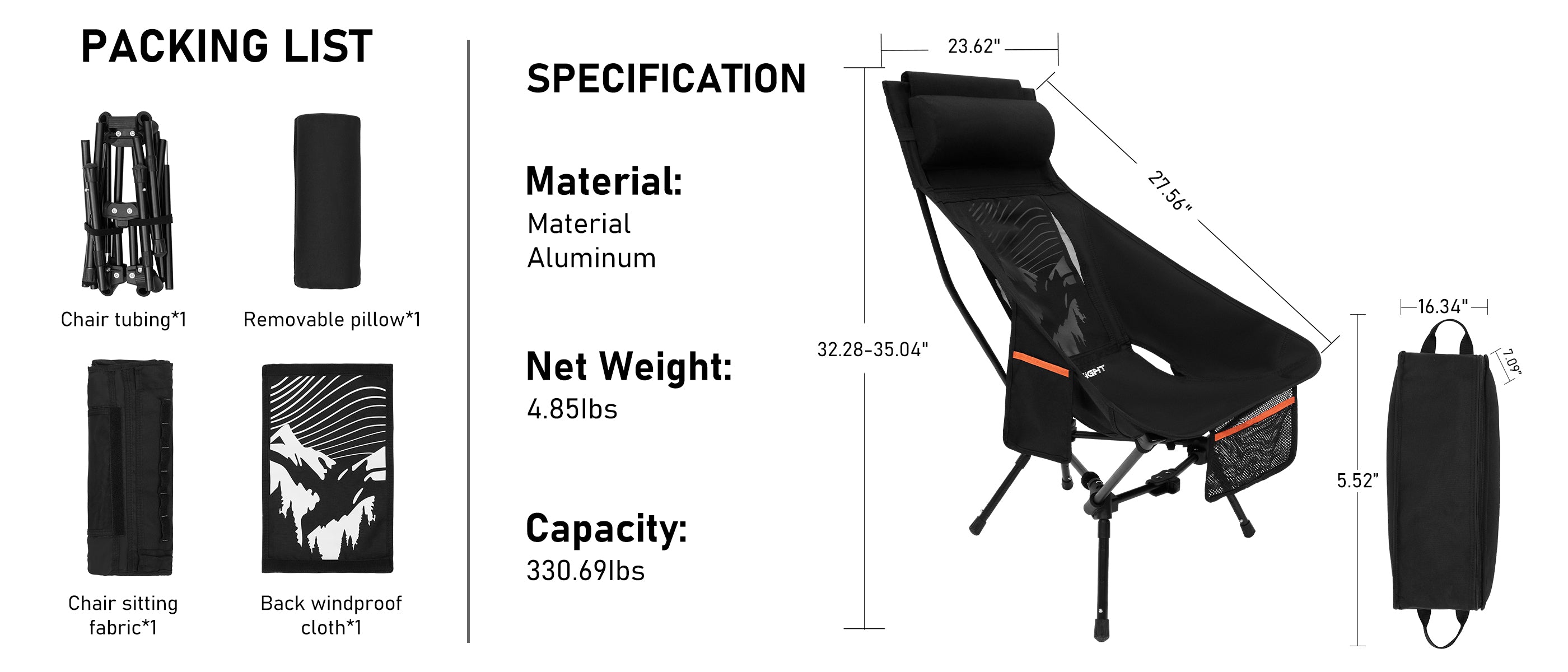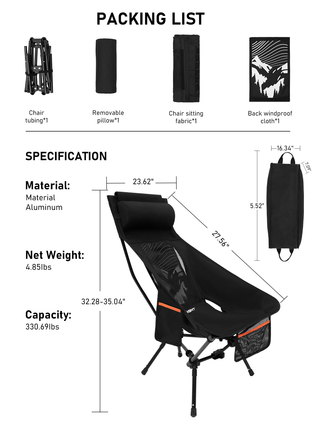 The maximum load-bearing capacity of the Novsight Rove series folding camping chair is 330Ibs/150kg