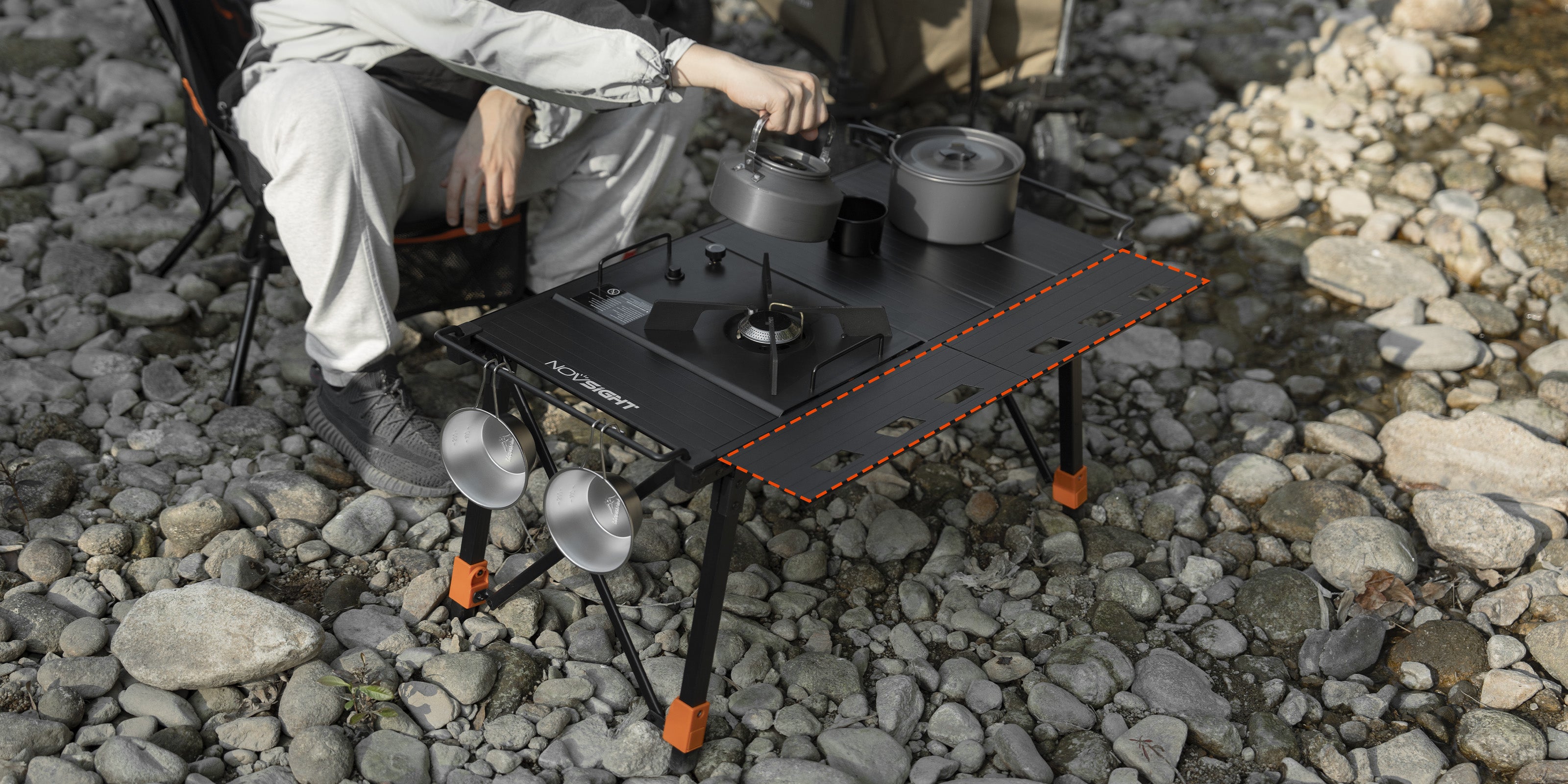 Set it low for riverside lounging. The stable frame handles uneven terrain, perfect for morning coffee or organizing gear by the water.