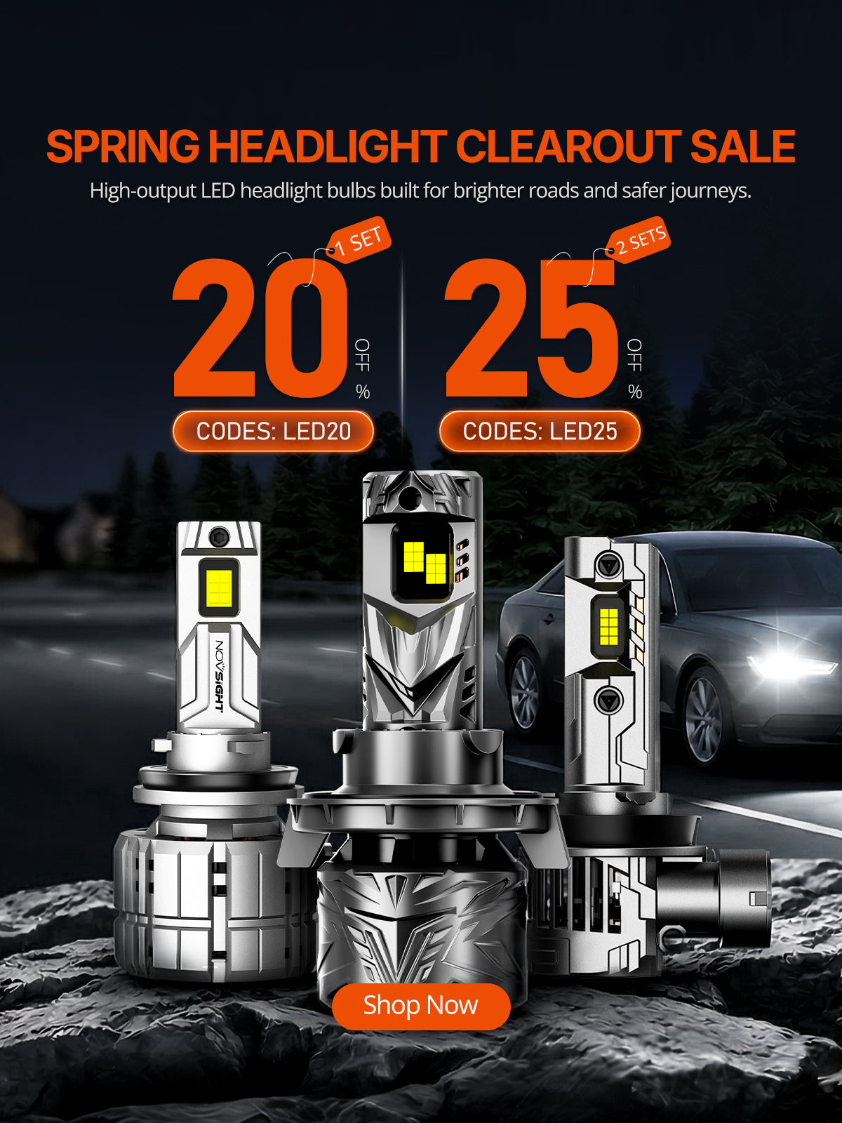 Our best-selling HALO and Cyber Series have a 2+3 year warranty. The N70 Series and N60 LED Headlight Bulbs have a 1+1 year Warranty.