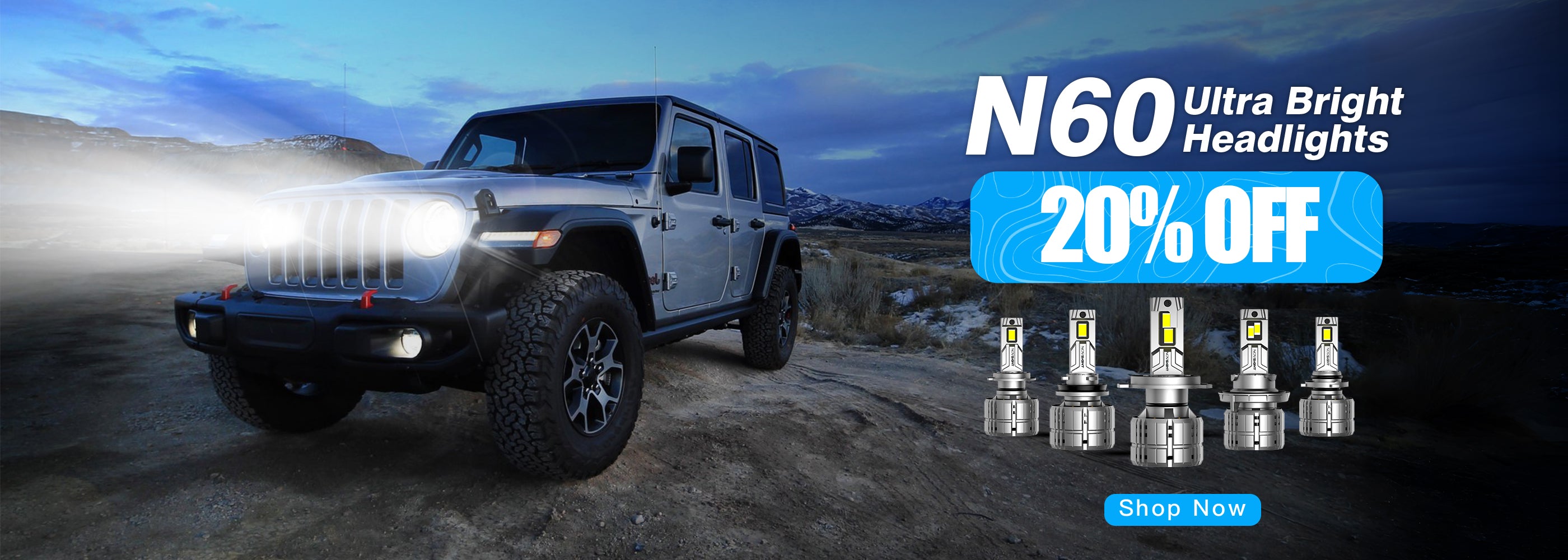 Serie N60 Ultra | 9005 9006 H11 H4 H7 H13 9004 9007 9012 D Bombillas LED Superbrillantes 200W 40000LM 6500K Blanco | 2 bombillas