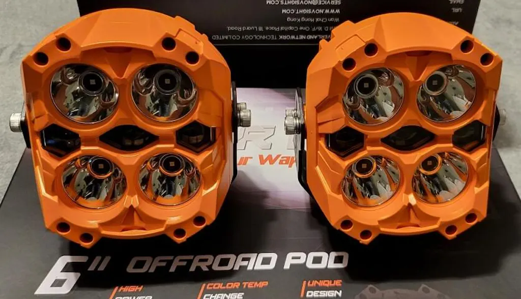 The Cyber 6-inch Cyber Orange LED Pod features advanced coating technology for a unique and distinctive look in off-road lighting. It comes with both black and orange covers, offering two color modes: white and amber. Without a cap, it emits a bright white light. With the orange cap, it produces a penetrating yellow light. The light modes are varied to suit a variety of road conditions and weather.