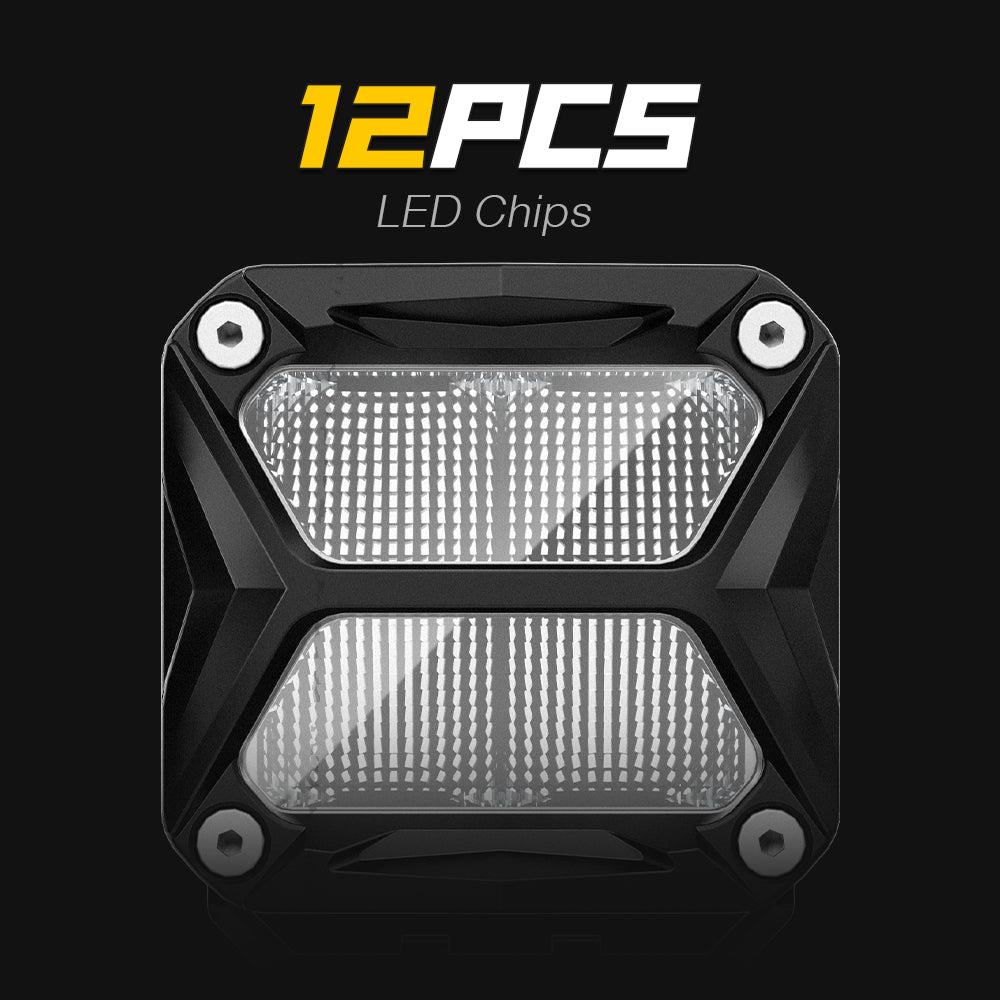 Each pair of pod lights delivers up to 120W of power and 16,200 lumens of brightness, with a color temperature of 6000K. They offer two lighting modes: spotlight for long-distance illumination and driving light for everyday needs. The Rock Series 4-inch LED pods boast a unique design that enhances your personalized off-road experience while providing exceptional brightness.