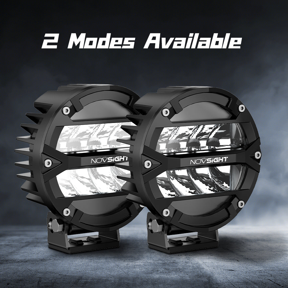 There are 2 modes to choose from: Spotlight mode for long distances, with a focused beam that penetrates the darkness, and Driving Light mode for mid- and long distances, with even illumination to enhance your safety.