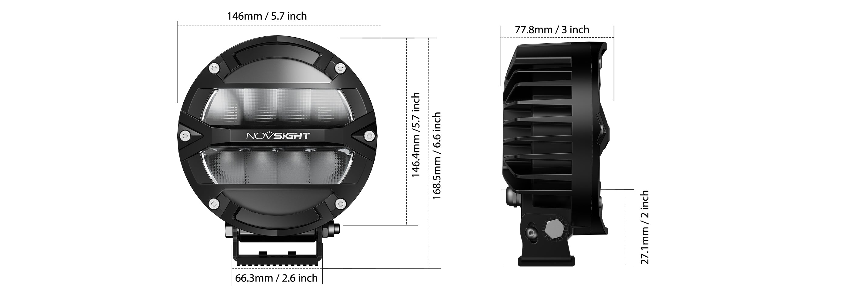 The Rock Series 5" driving light pattern is perfect for mid- to long-range lighting during off-road adventures. With a powerful 160W output and stable performance, it provides bright and even lighting, significantly improving your nighttime visibility. The flat beam pattern of the driving light can expand the area covered by the light to a certain extent, expanding your driving vision.