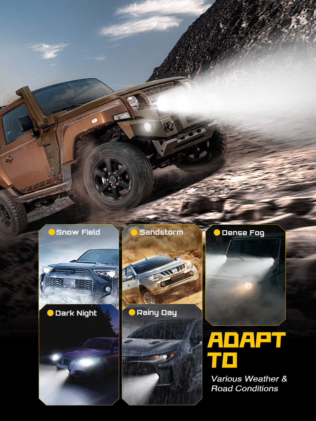 Each pair of pod lights delivers up to 184W of power and 21,600 lumens with 6000K white brightness, powered by 16 high-efficiency LED chips, which provide unmatched brightness, ensuring you can see every detail even in the darkest environments.