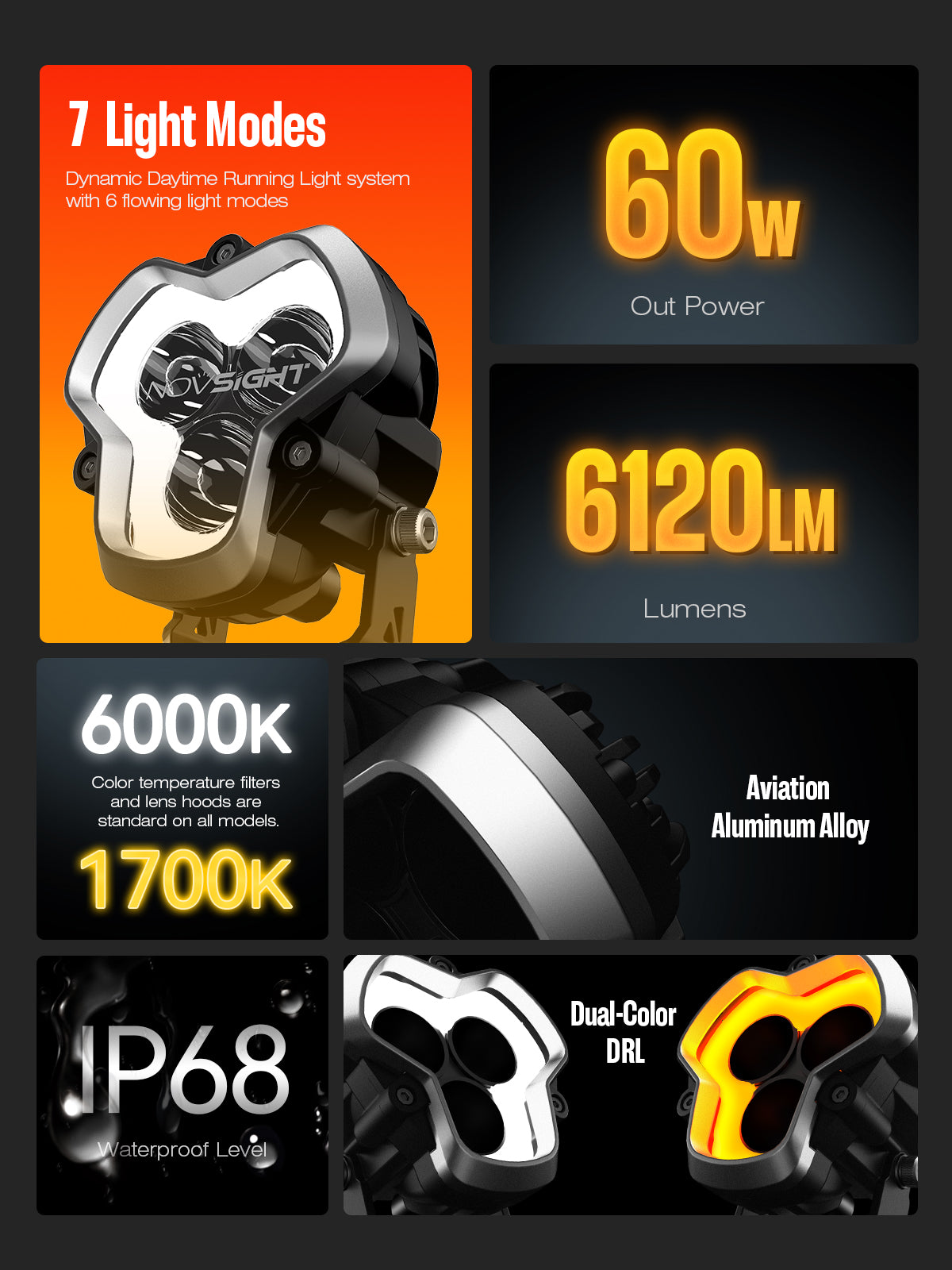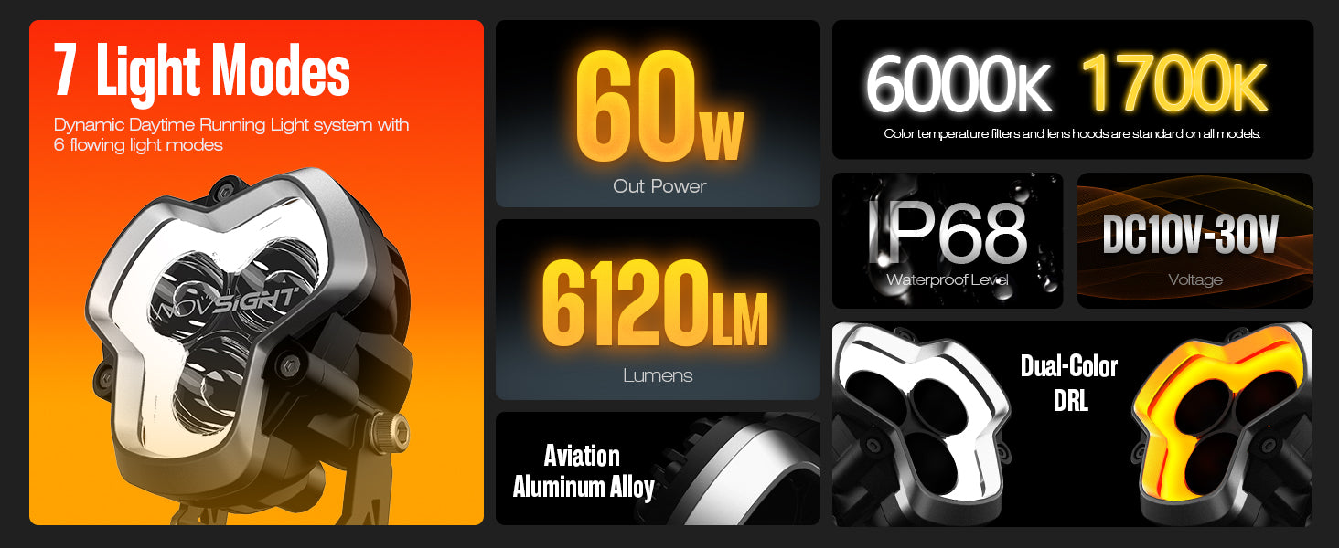 Command the night with HALO Pro Lights - the world's first off-road lights featuring 7 customizable sequential dynamic DRL modes, including an industry-exclusive flowing water effect etc,. Built for extreme adventures, these revolutionary lights deliver both unmatched visibility and head-turning style across any terrain. More than illumination - it's a statement. Where innovation meets the wild.