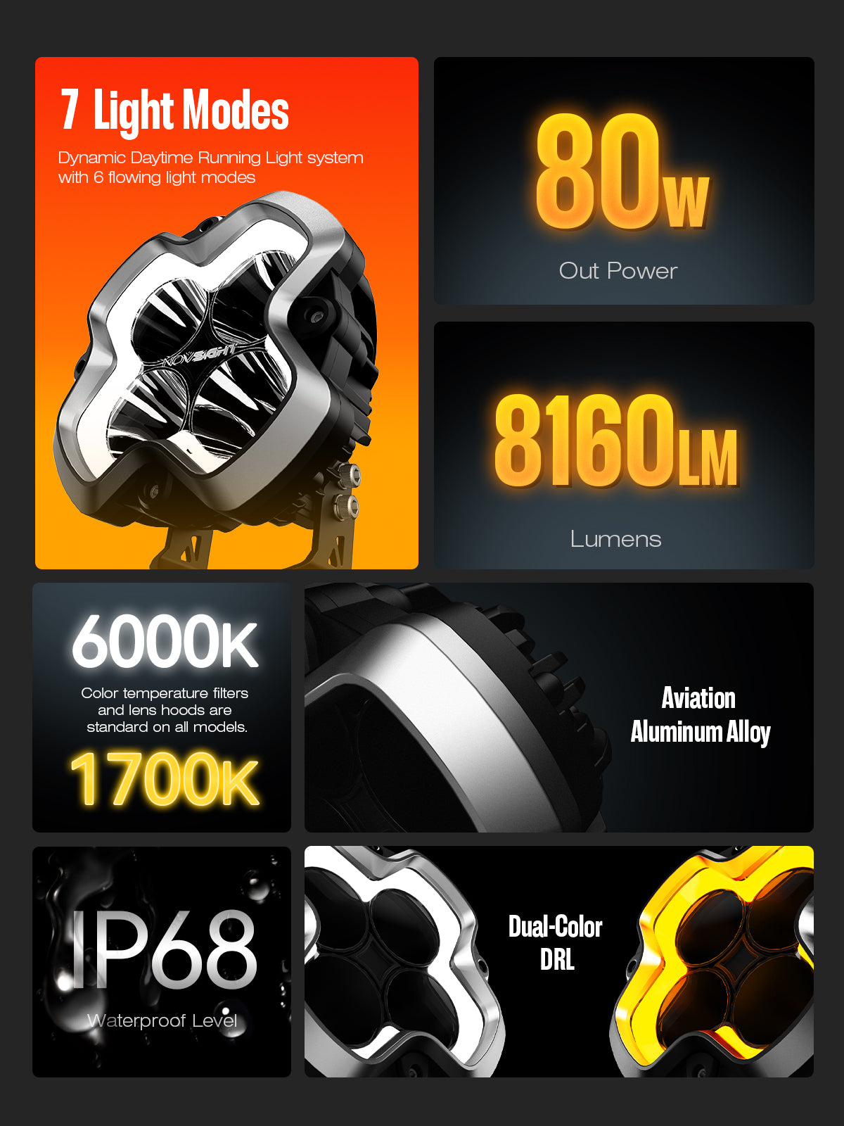 Meet the game-changing Halo Pro off-road lights – now with intelligent memory function that remembers your favorite DRL mode. No more tedious re-setting after restarting your rig – just one click and you're back in action. Engineered for those who chase the unbeaten path, this upgrade puts instant control at your fingertips, so you can focus on conquering trails, not adjusting lights. Your preference. Your power. Always ready.