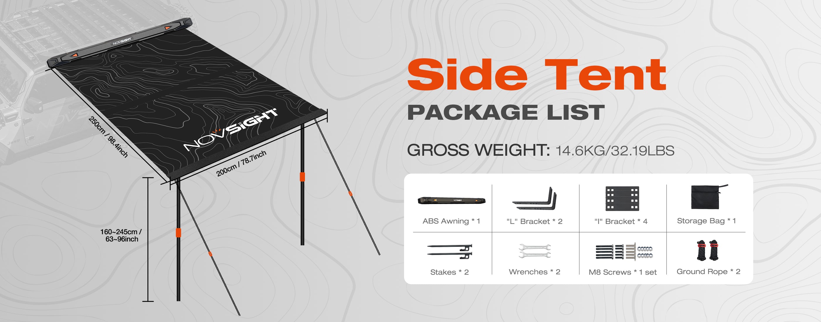 This side awning is compatible with a wide range of vehicles, including SUVs, sedans, trucks, vans, campers, and Jeeps. It fits most vehicles equipped with roof racks or roof crossbars.