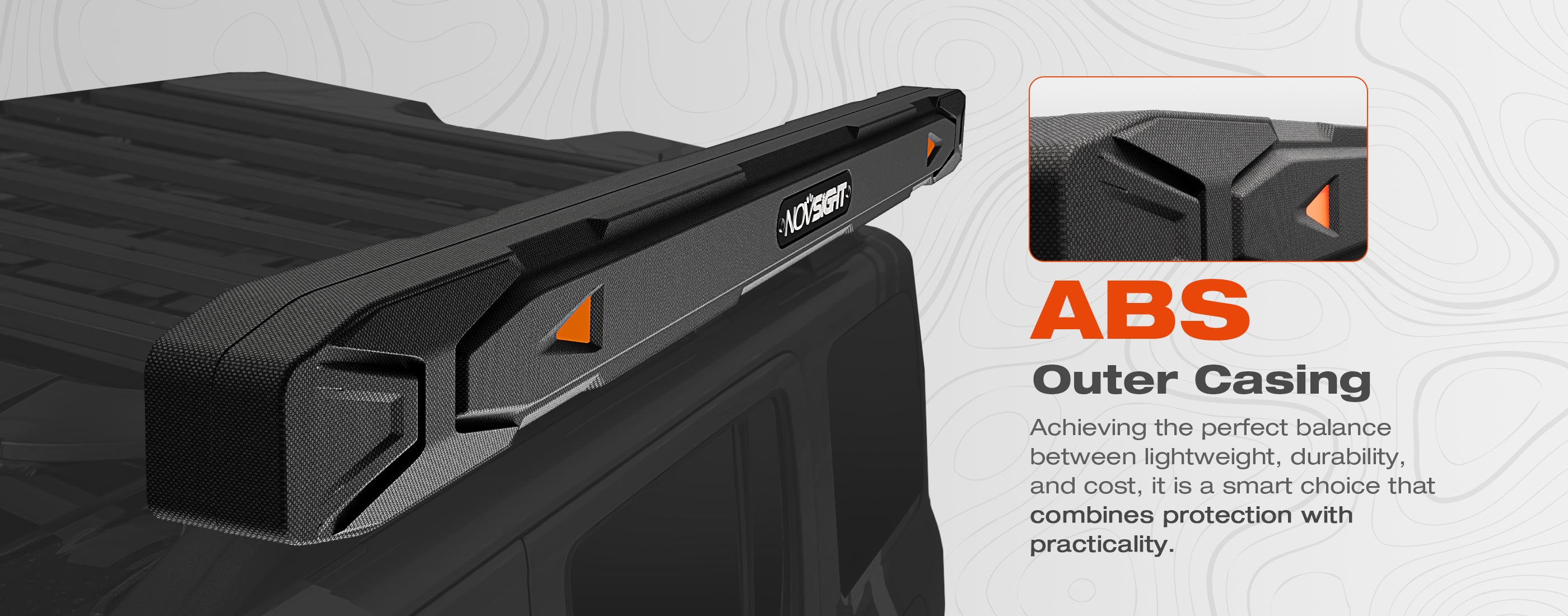 This side awning features a rugged ABS (Acrylonitrile Butadiene Styrene) hard shell, a premium thermoplastic commonly used in outdoor equipment. It delivers excellent impact resistance, heat tolerance, and a smooth, scratch-resistant surface, protecting the awning from rain, sun, and daily wear. Ideal for camping, overlanding, and off-road adventures.