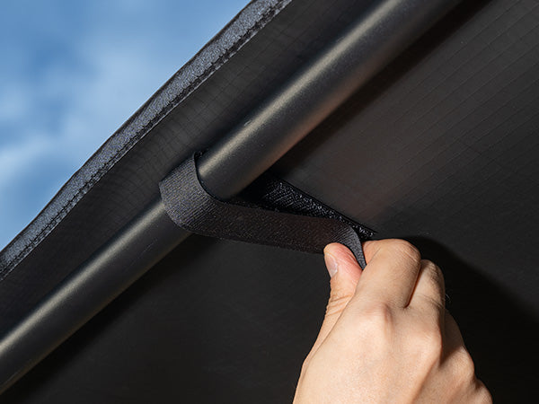 Heavy-duty Velcro straps securely hold the awning fabric in place, allowing fast setup and easy packing when not in use.