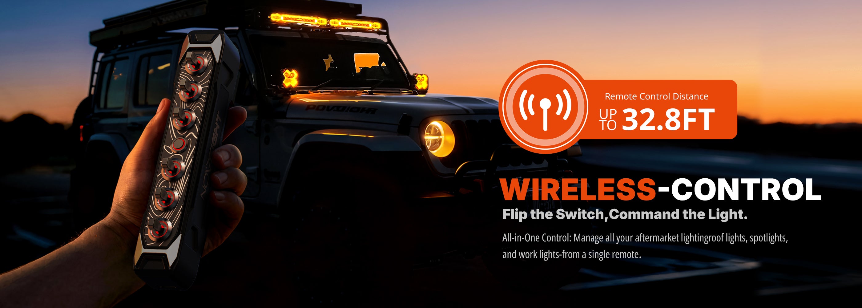 Built for off-road adventurers who demand power and precision, the CYBER Series Toggle Control helps you conquer any terrain. Its innovative toggle design lets you instantly turn lights on or off—no lag, no hassle—while The wireless control design keeps installations clean and cable-free, with a red halo that only illuminates when activated for clear visibility at night. Equipped with a built-in radio wave sensing system for wireless operation, this compact panel features a durable aluminum housing and six-way controls, giving you full command of your lights and accessories—simple, rugged, and ready for every adventure.
