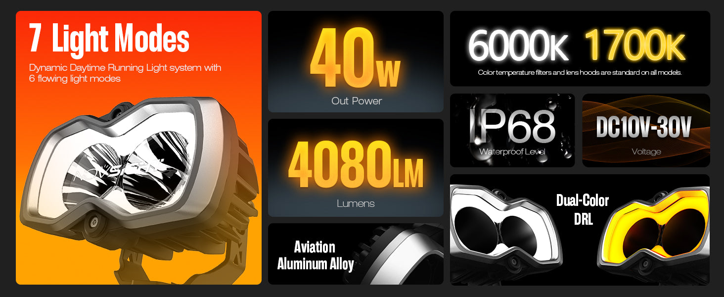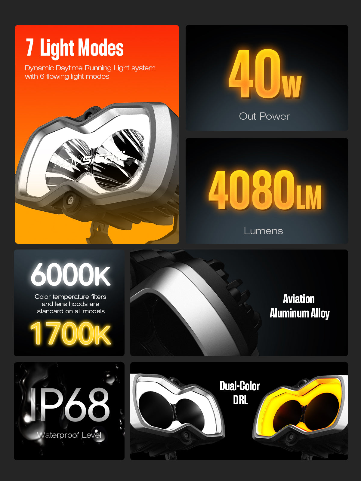 Take Control of the Night with HALO Pro Lights — the world’s first off-road lights featuring 7 customizable dynamic DRL modes, including a one-of-a-kind flowing light effect. Engineered for extreme adventures, HALO Pro delivers unmatched visibility and a bold, head-turning look across any terrain. It's where innovation meets wild — setting HALO Pro apart from the original HALO.