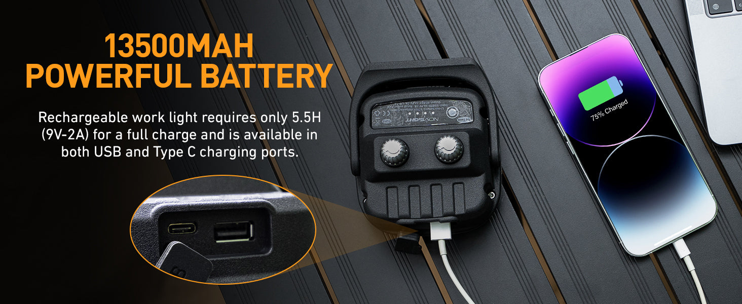 - Battery capacity: 13500mah (50Wh) (3x21700)