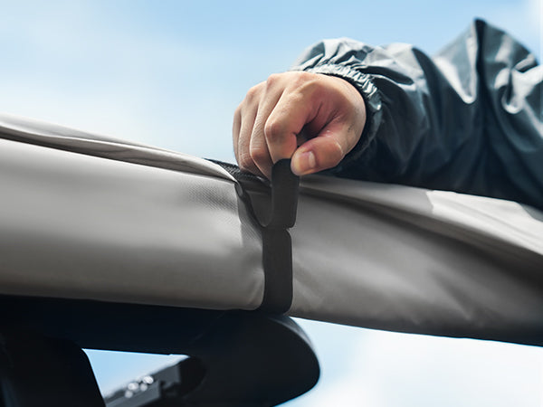 Just use your car side awning, a sleek and convenient canopy that attaches to your car and unfolds in minutes.