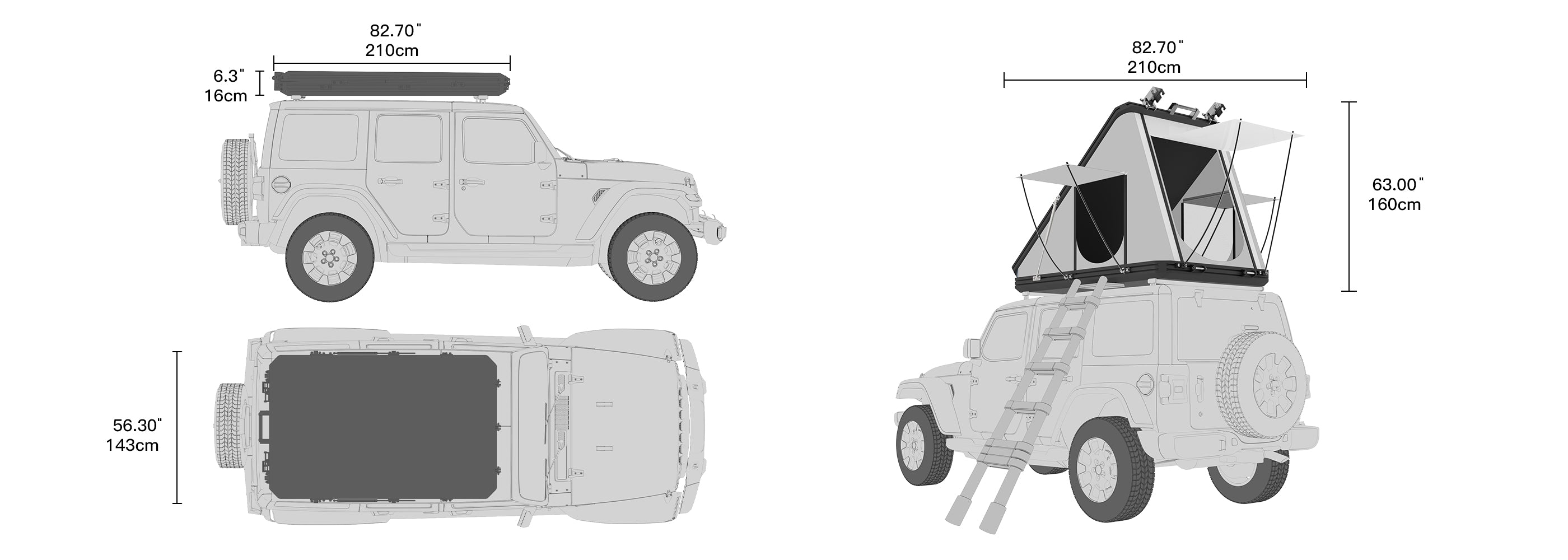Our unique design makes setting up and taking down the rooftop tent effortless. With a push of the tent, the automatic telescopic poles pop up and support in place—no manual setup or hassle required.