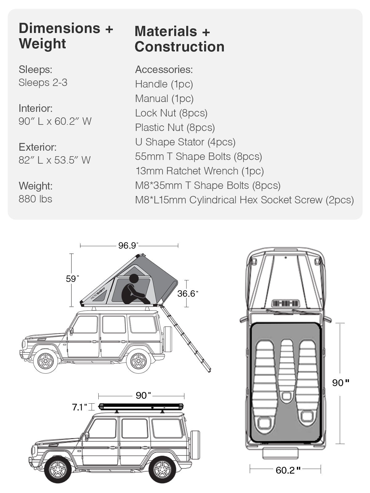 • The rooftop tents only available in the US. but do not support delivery to outlying islands.